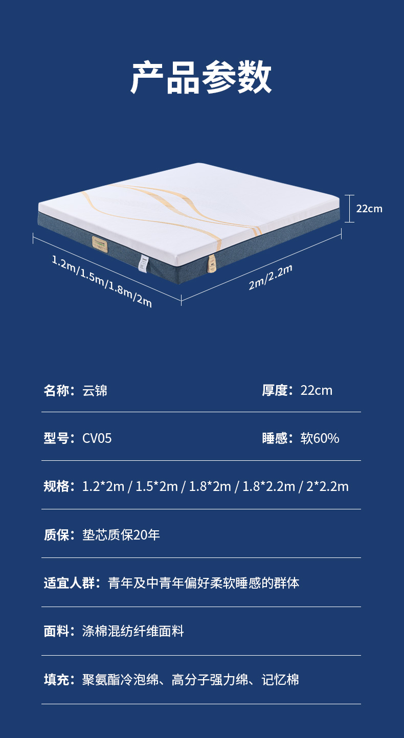 CV05云錦 厚度22cm 睡感:軟60% 指導價:5980.00